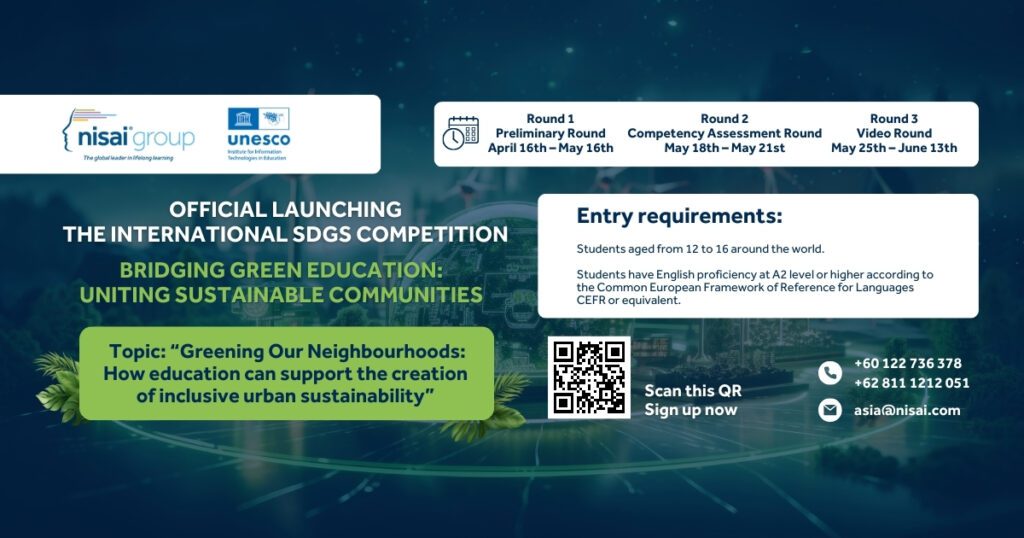Nisai Group and UNESCO IITE are co-organizing the exclusive SDGs competition “Bridging Green Education: Uniting Sustainable Communities” to support students’ green education initiatives aimed at achieving the SDGs.
